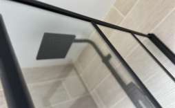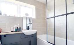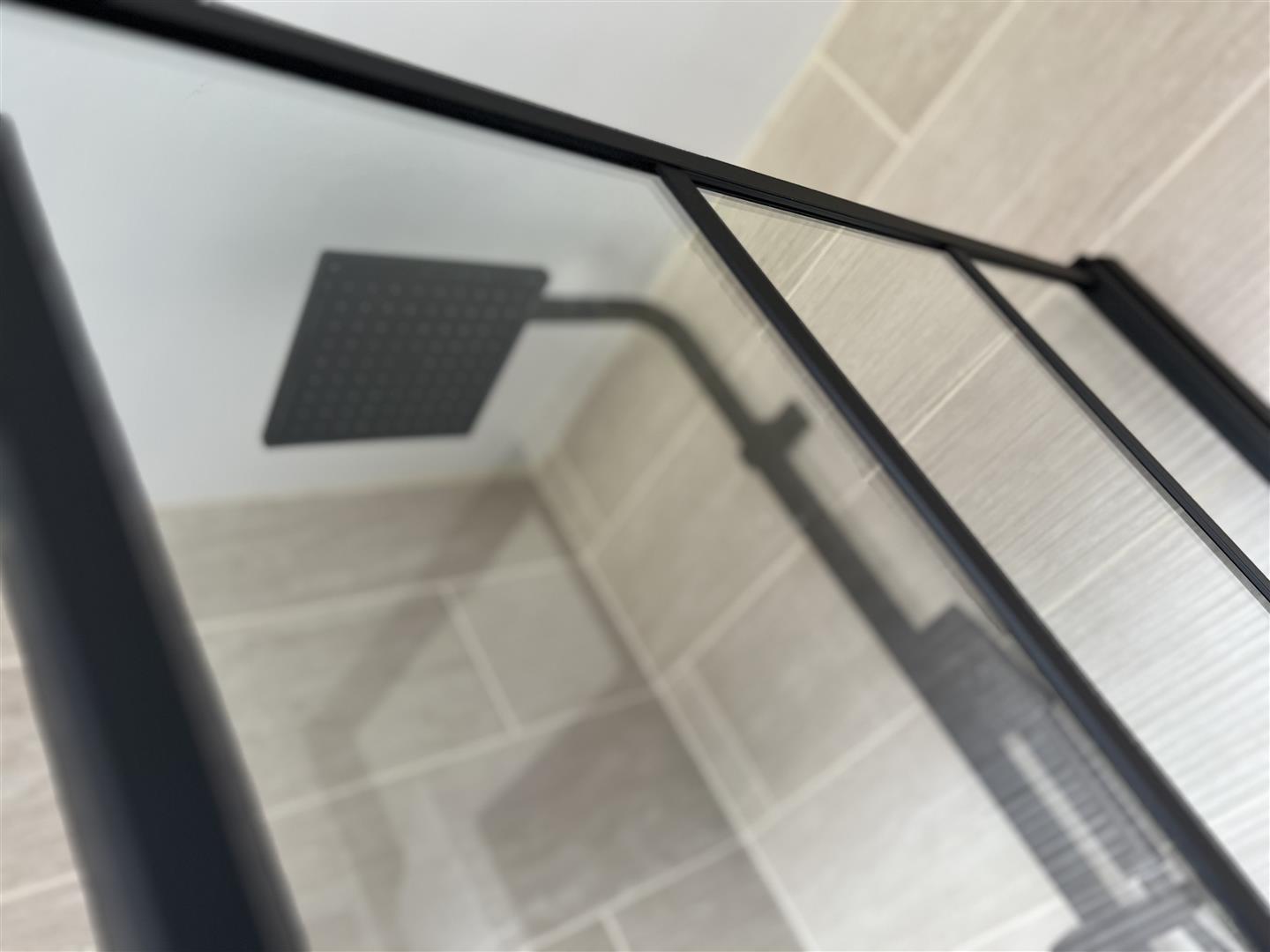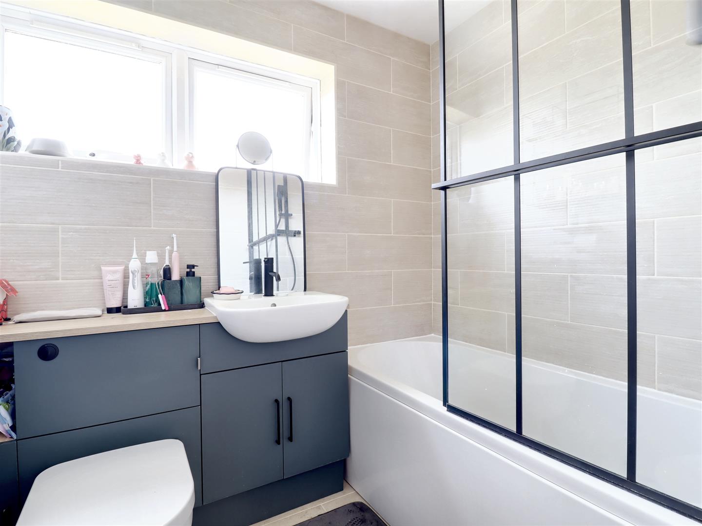 Bathroom - Sealed unit double glazed frosted window to the rear, newly fitted suite comprising good sized bath with black fittings including an over bath shower with industrial look screen, vanity wash basin and wc. Towel rail.