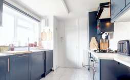 Kitchen - Sealed unit double glazed window to the rear, newly fitted kitchen offering a good range of base and wall mounted units in a lovely blue with complimenting copper handles. Integrated appliances to include gas on glass hob, electric oven and extractor fan over. Integrated dishwasher, fridge/freezer and washer/dryer. Sink unit with designer style mixer tap over. Tiled splash backs. Built in cupboard and walk in boiler cupboard.