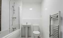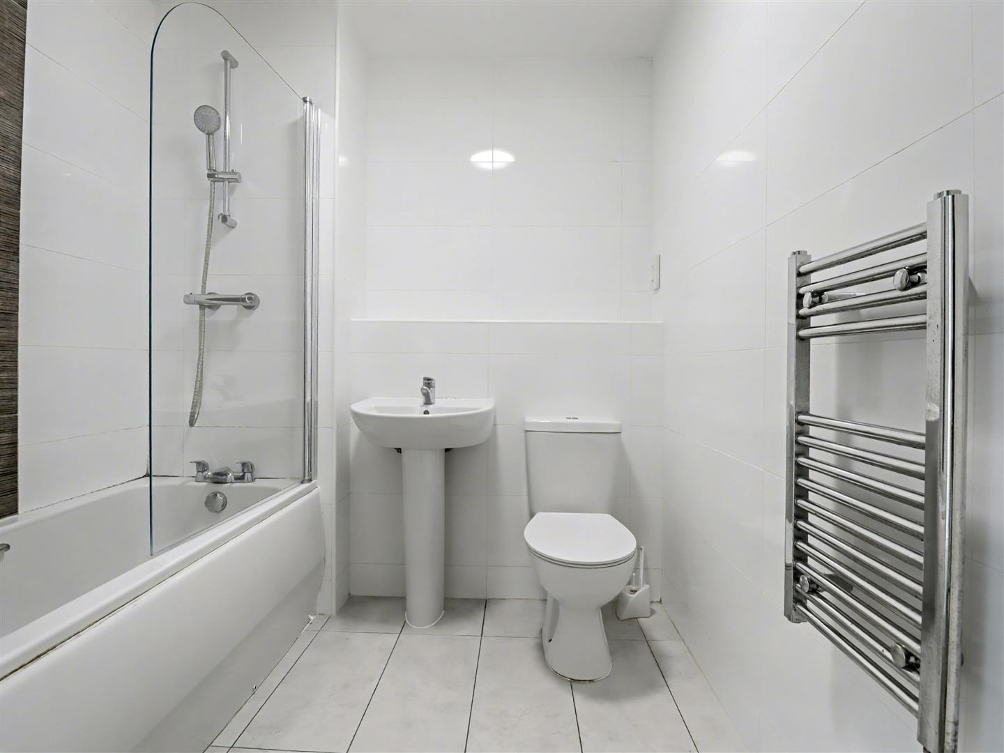 Bathroom - Panel bath with shower, screen, wc and wash hand basin and heated towel rail.