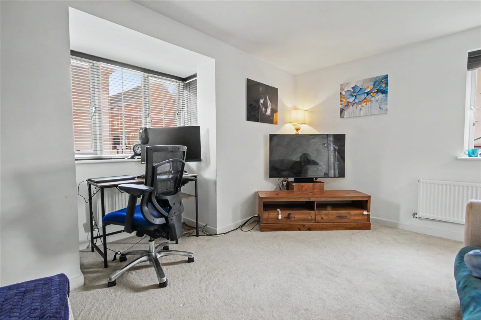 Living Room - 3.05 x 4.83 (10'0" x 15'10") - Carpeted Living room offering warmth and cosy living. Square bay window offering plenty of light with the 3 windows, perfect for a desk for home working. Blue painted feature wall. Lots of natural light in the room.